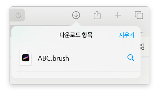 Tip. 브러시 파일이 컴퓨터에 저장되어 있다면 먼저 아이패드로 전송해주세요.
