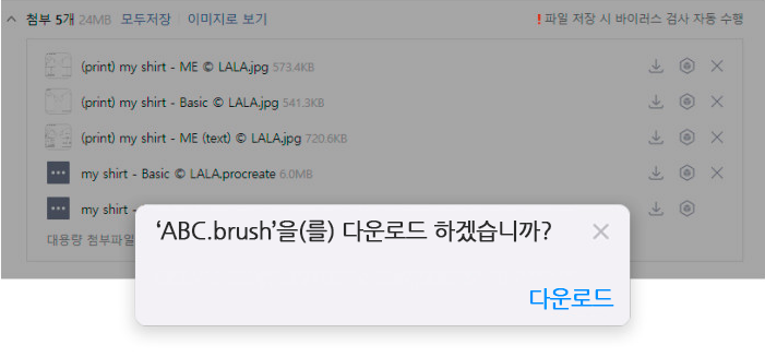 1. 인터넷에서 브러시 파일을 눌러 다운로드를 진행합니다.